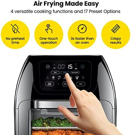 Monitor cooking progress: The interior lights and extra-large air fryer oven window allow you to check your food’s cooking progress