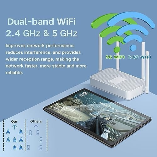 【Portable 2 in 1 Tablet with Keyboard】The 10.1 inch tablet equipped with a bluetooth keyboard, wireless mouse, and a foldable protective case, allowing you to seamlessly transform your 10” tablet into a laptop-style device. This versatility makes it the ideal device for those who need to be productive on the go, whether it be for work, study, or play.